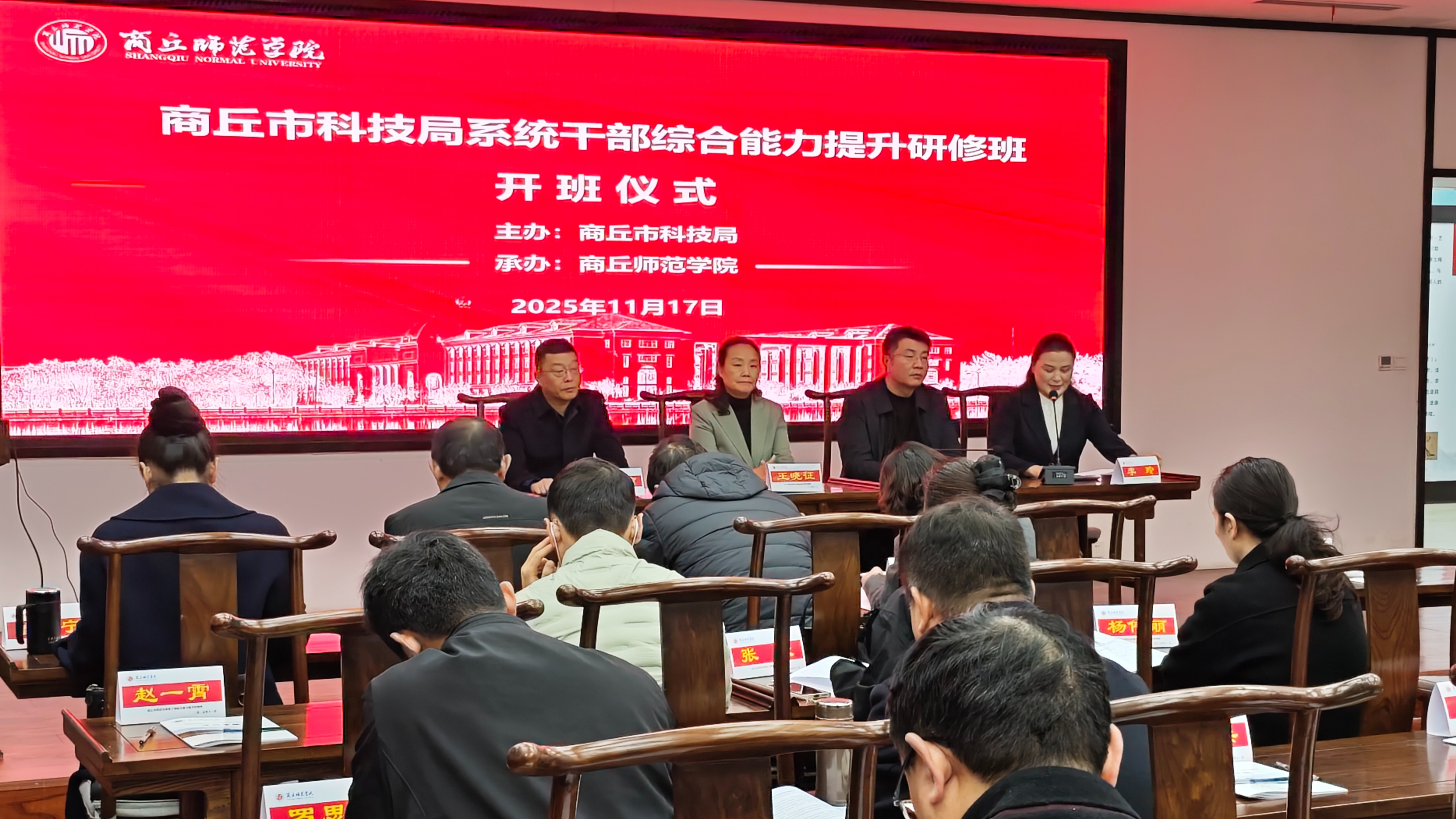 为进一步深化校地合作,服务地方人才队伍建设,17日上午,由商丘市科技局主办,商丘师范学院继续教育学院承办的“商丘市科技局系统干部综合素质提升培训班”开班仪式在我校梁园校区国学堂隆重举行。商丘师范学院副校长王晓征、商丘市科技局党组书记张曦出席仪式并致辞和讲话。继续教育学院院长李玲主持开班仪式。