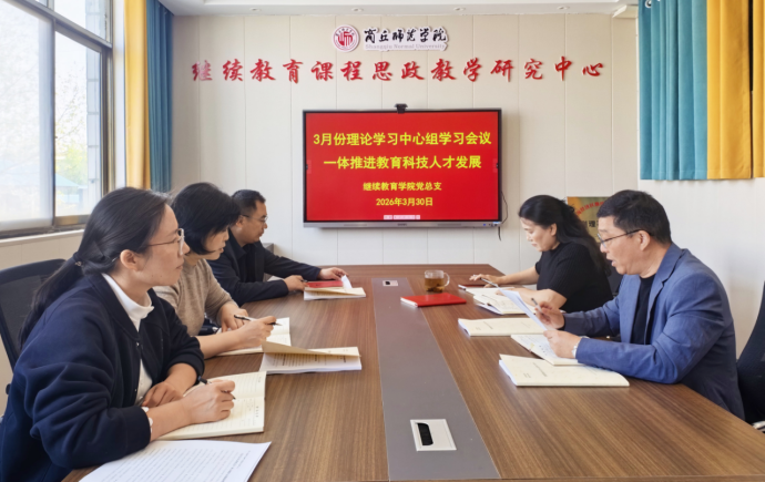 3月30日,继续教育学院党总支举行理论学习中心组学习,围绕“一体推进教育科技人才发展”主题开展专题学习研讨。中心组成员牛月翰、李玲、张凯、司彩玲参加会议,牛月翰主持学习研讨。