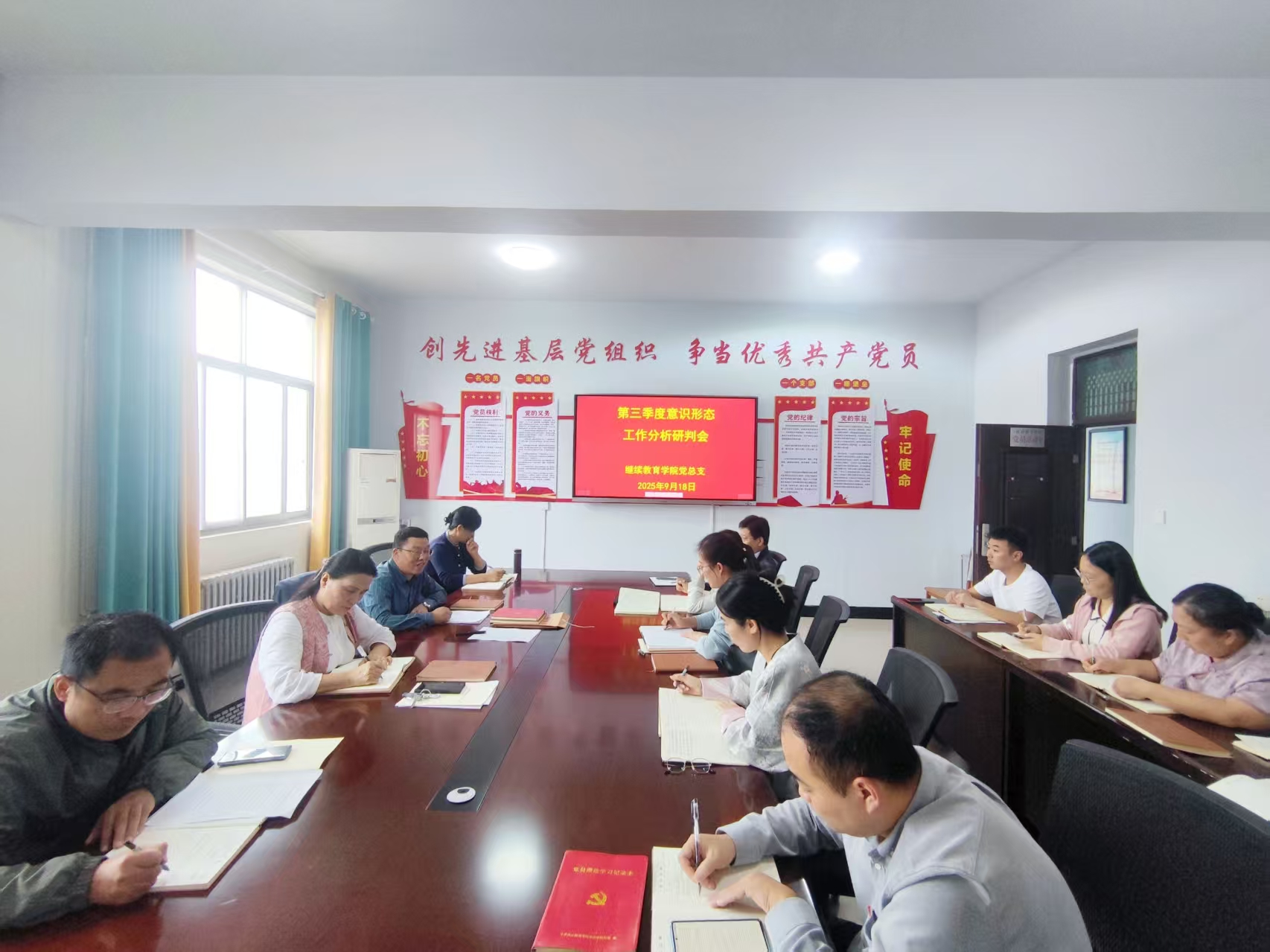 9月18日下午,继续教育学院召开2025年第三季度意识形态工作分析研判会。会议由学院党总支书记牛月翰主持,全体教职工参会。