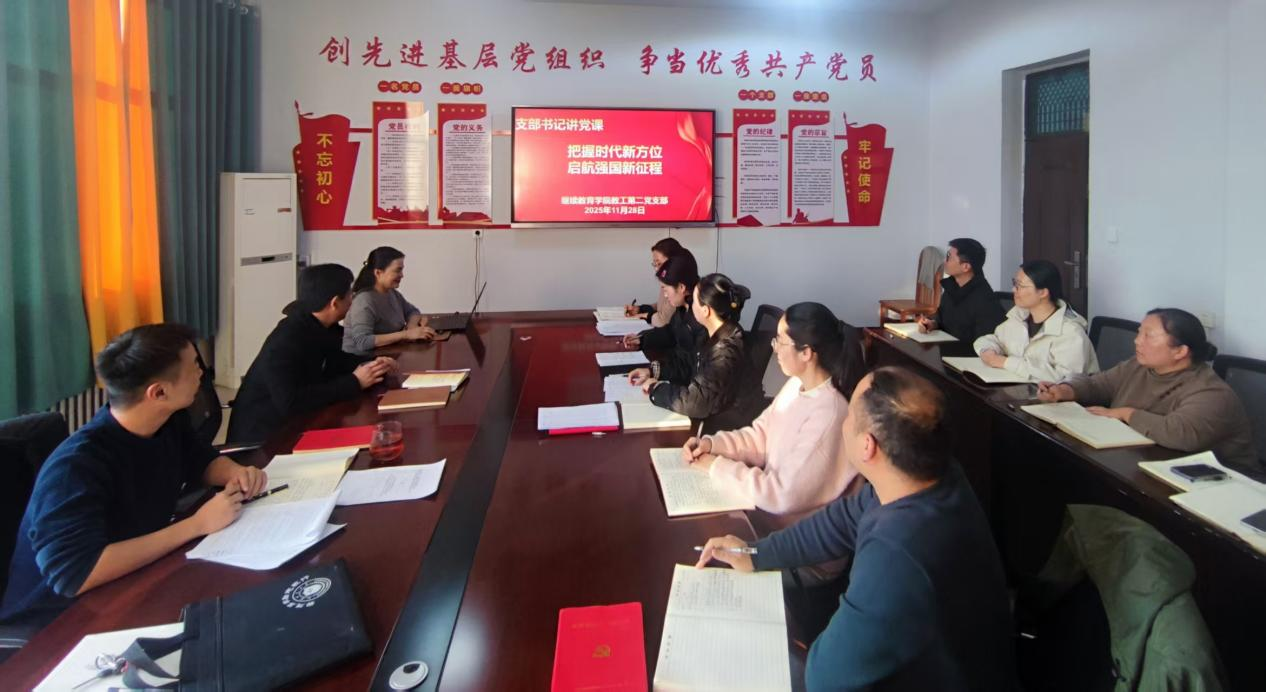 为深入学习贯彻党的二十届四中全会精神,准确把握“十五五”时期经济社会发展的目标任务与实践要求,凝聚育人奋进力量,切实把思想与行动统一到党中央关于教育强国建设的决策部署上来,2025年11月28日,继续教育学院教工第二党支部在二楼会议室召开学习贯彻党的二十届四中全会精神专题党课。继续教育学院院长李玲为第二支部全体党员开讲“把握时代新方位 启航强国新征程”专题党课,把“文件话”变成“家常话”,让全会精神直抵课堂。