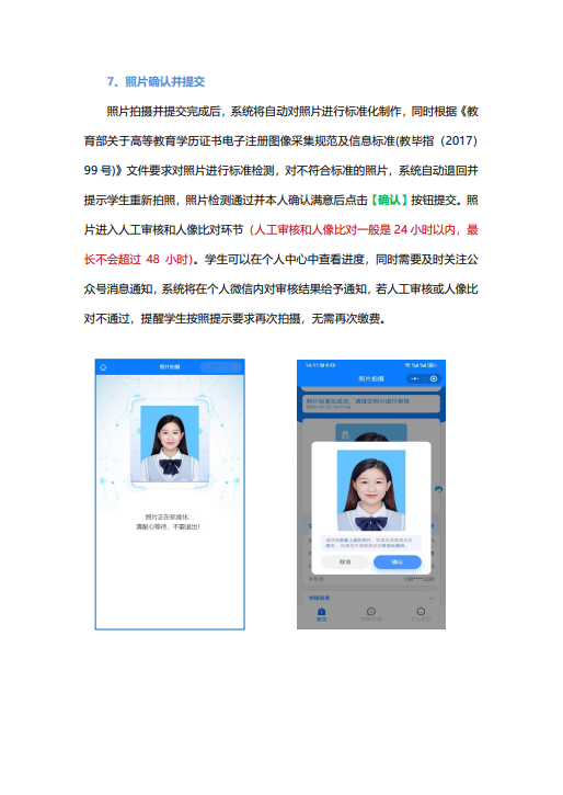 1.该图像信息用于毕业证书制作、学信网学历电子注册。为了保证采集效果,请务必按规定时间和要求进行图像信息采集,采集时如遇问题,请及时与采集单位客服联系。