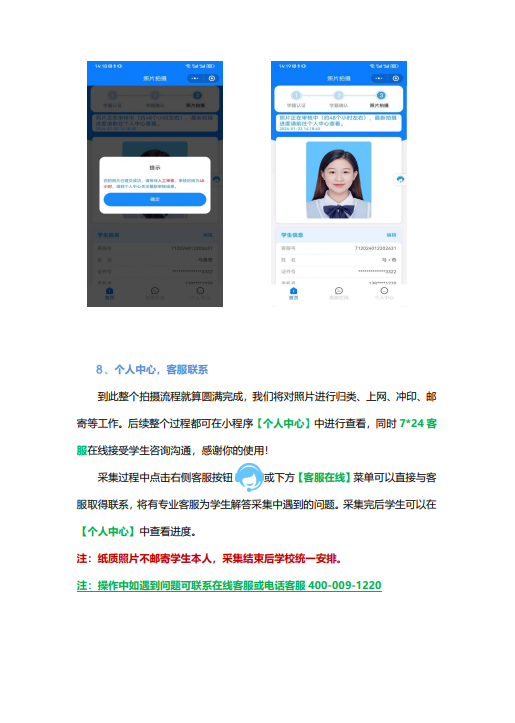 4.为了保证采集效果,请同学们务必按有关规定和要求进行图像信息采集,学生采集中如有问题,请及时与在线客服联系。